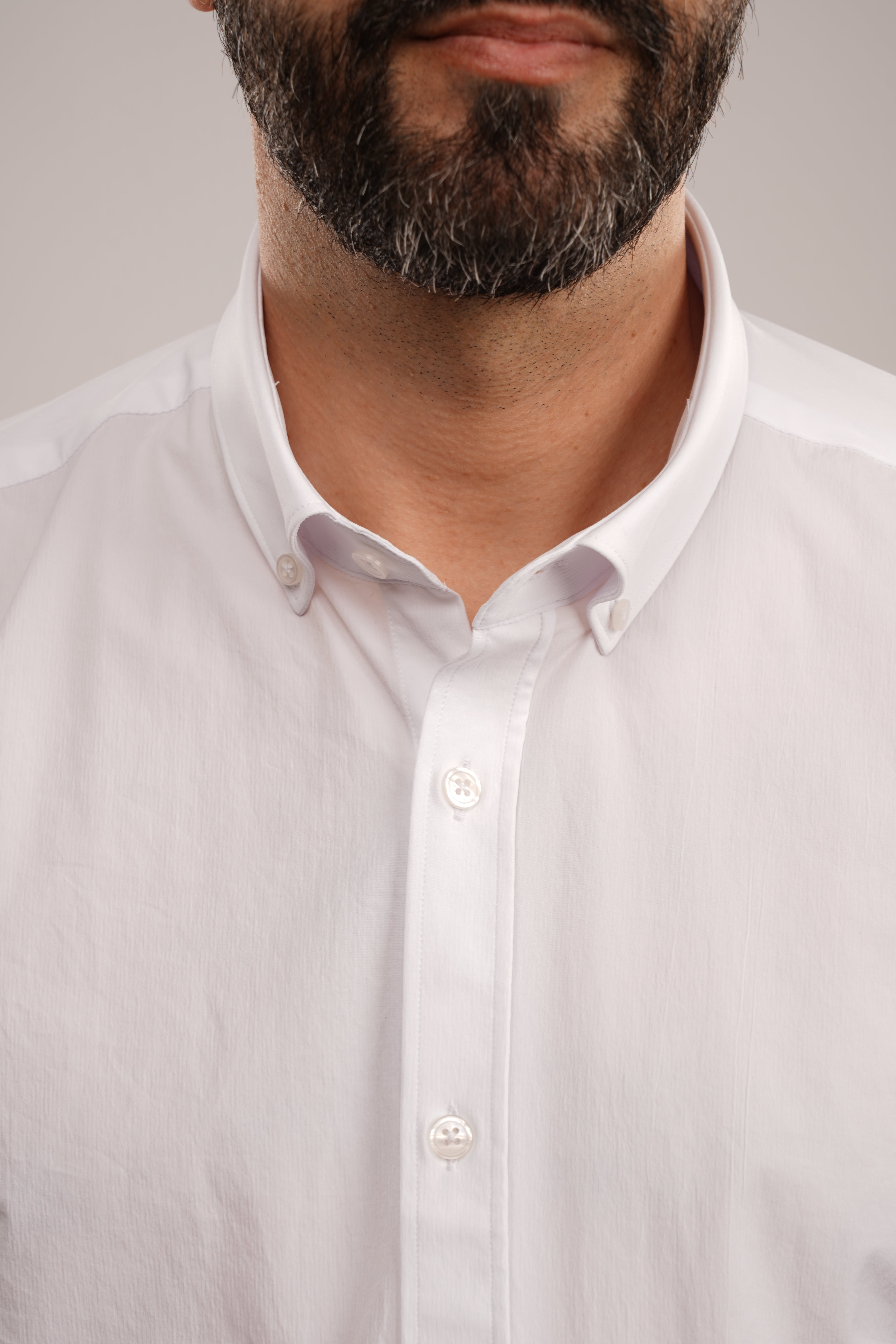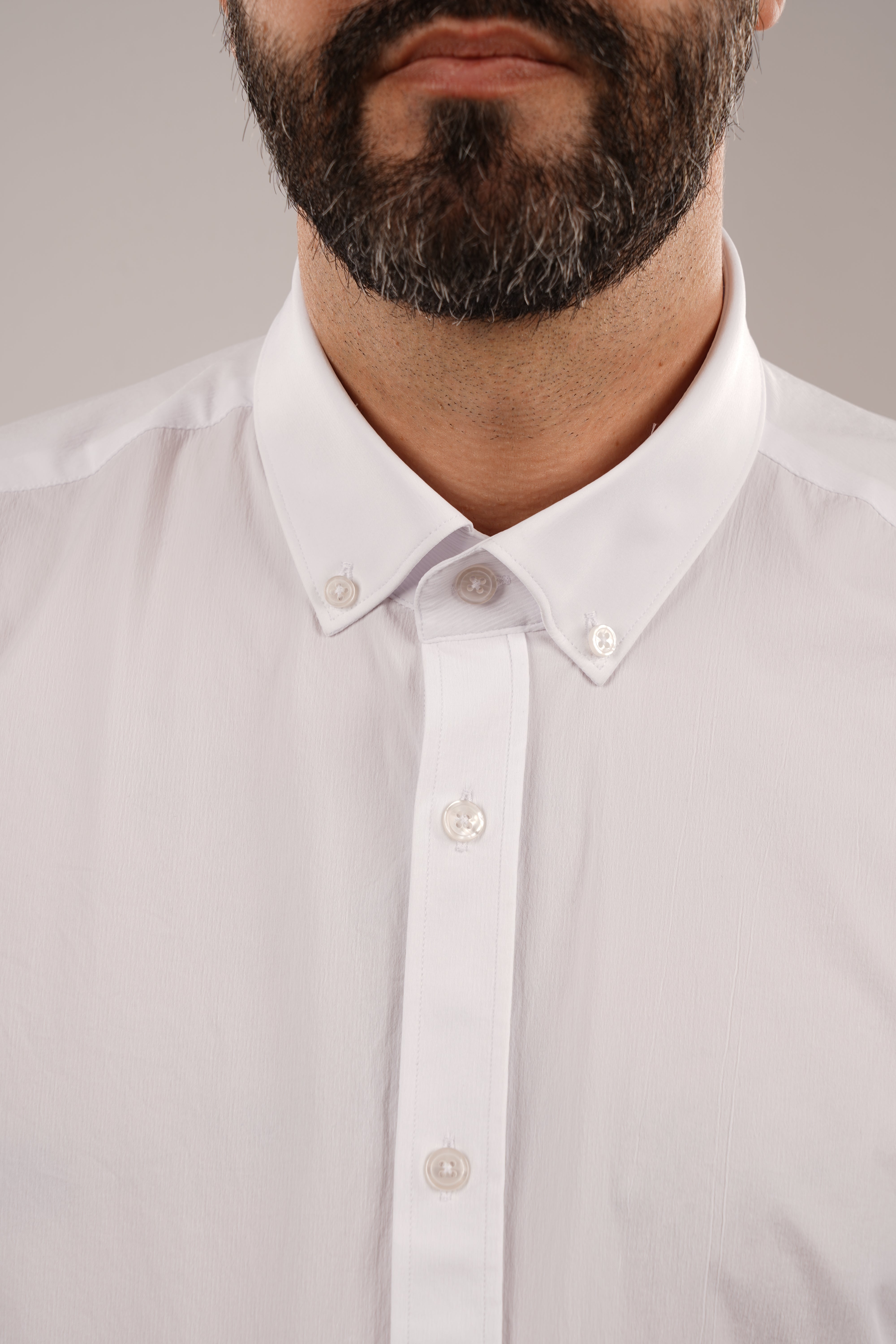 Confecționată din 93% bumbac și 7% licra, cămașa oferă elasticitate superioară, confort excelent și mobilitate naturală. Croiala slim este disponibilă din XS până la 2XL, asigurând o așezare impecabilă pe corp. Dispune de mansete simple, guler prins cu nasturi și nasturi perlați integrați armonios în design. O piesă premium, concepută pentru bărbații care caută o cămașă albă elegantă, practică și foarte confortabilă.