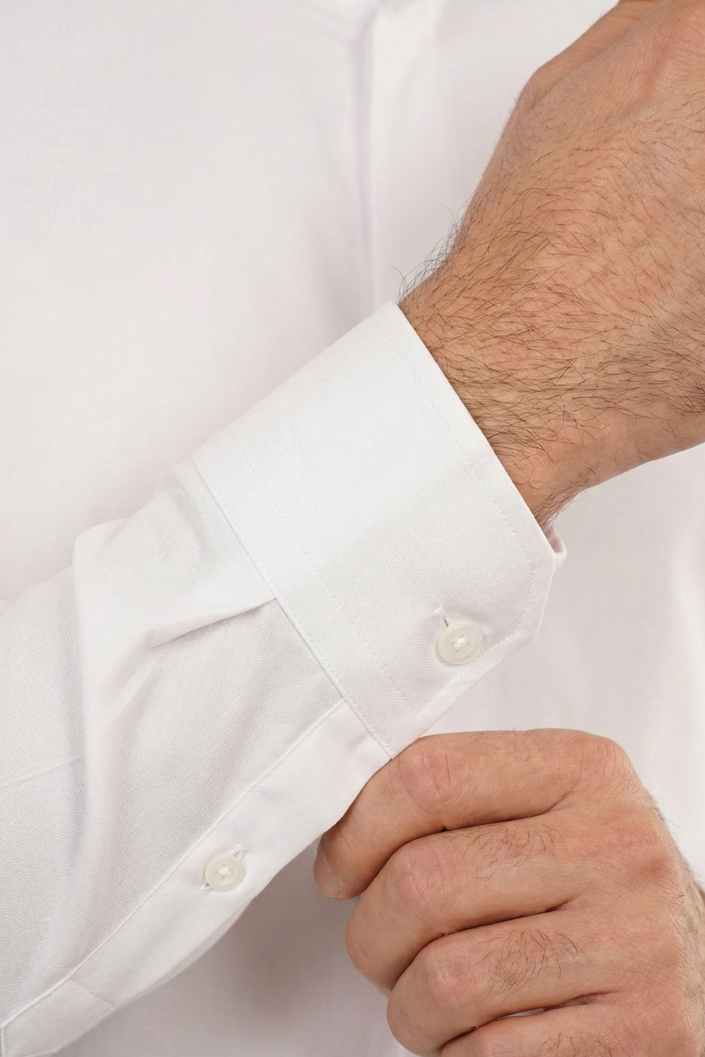 Realizată din 97% bumbac și 3% elastan, cămașa oferă confort, respirabilitate și o elasticitate discretă pentru mobilitate naturală. Croiala este slim de la XS la XL și regular de la L la 4XL, adaptându-se perfect diferitelor preferințe. Modelul prezintă mansete simple și nasturi în ton cu materialul, completând un look modern, versatil și extrem de curat. O alegere excelentă pentru bărbații care își doresc o cămașă albă elegantă, cu un detaliu distinctiv.