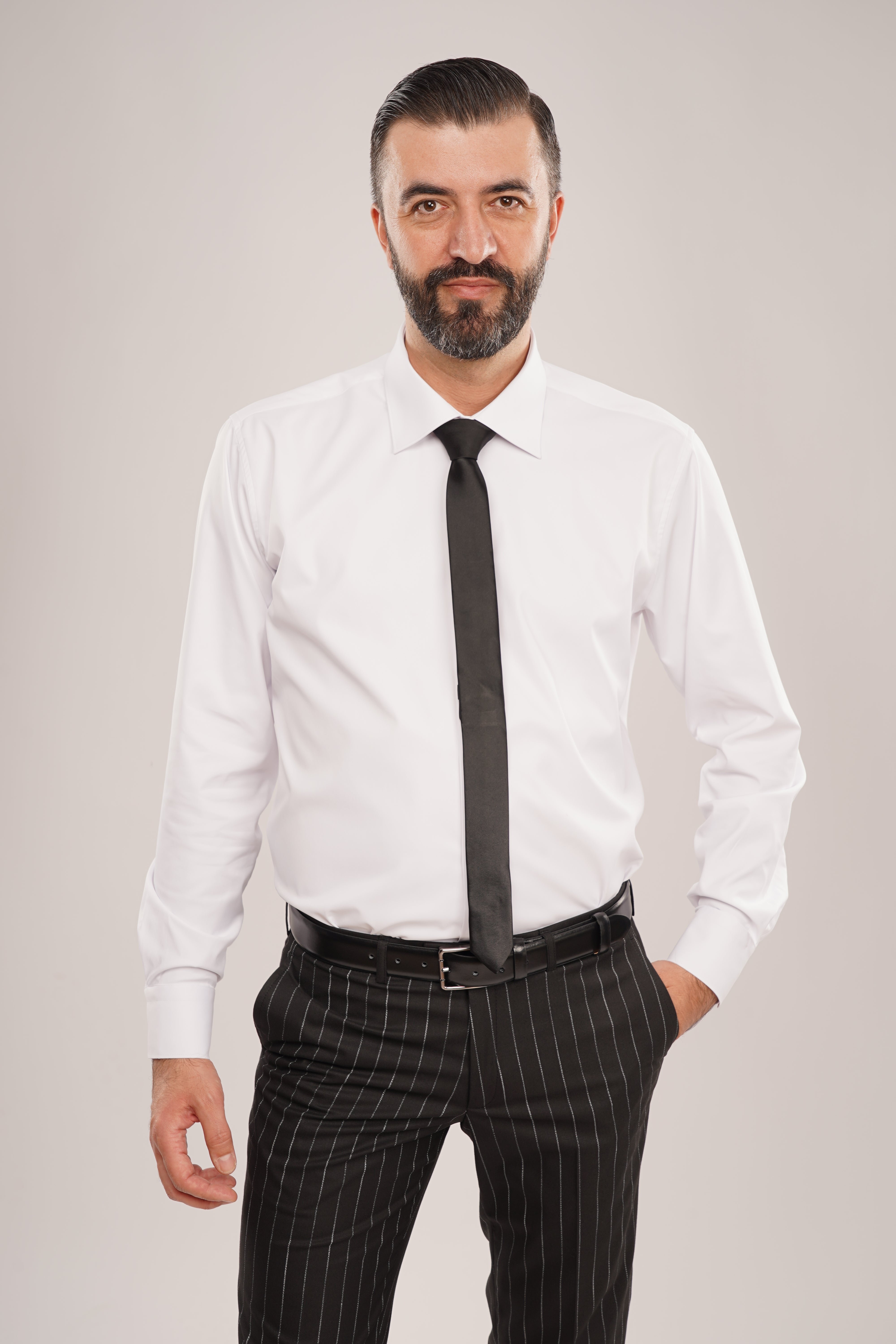 Cămașă Bărbați Albă Elegantă – Bumbac Elastic