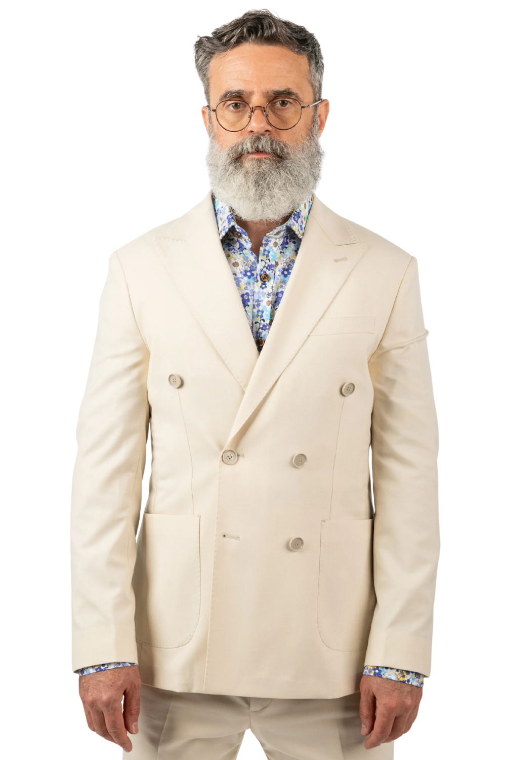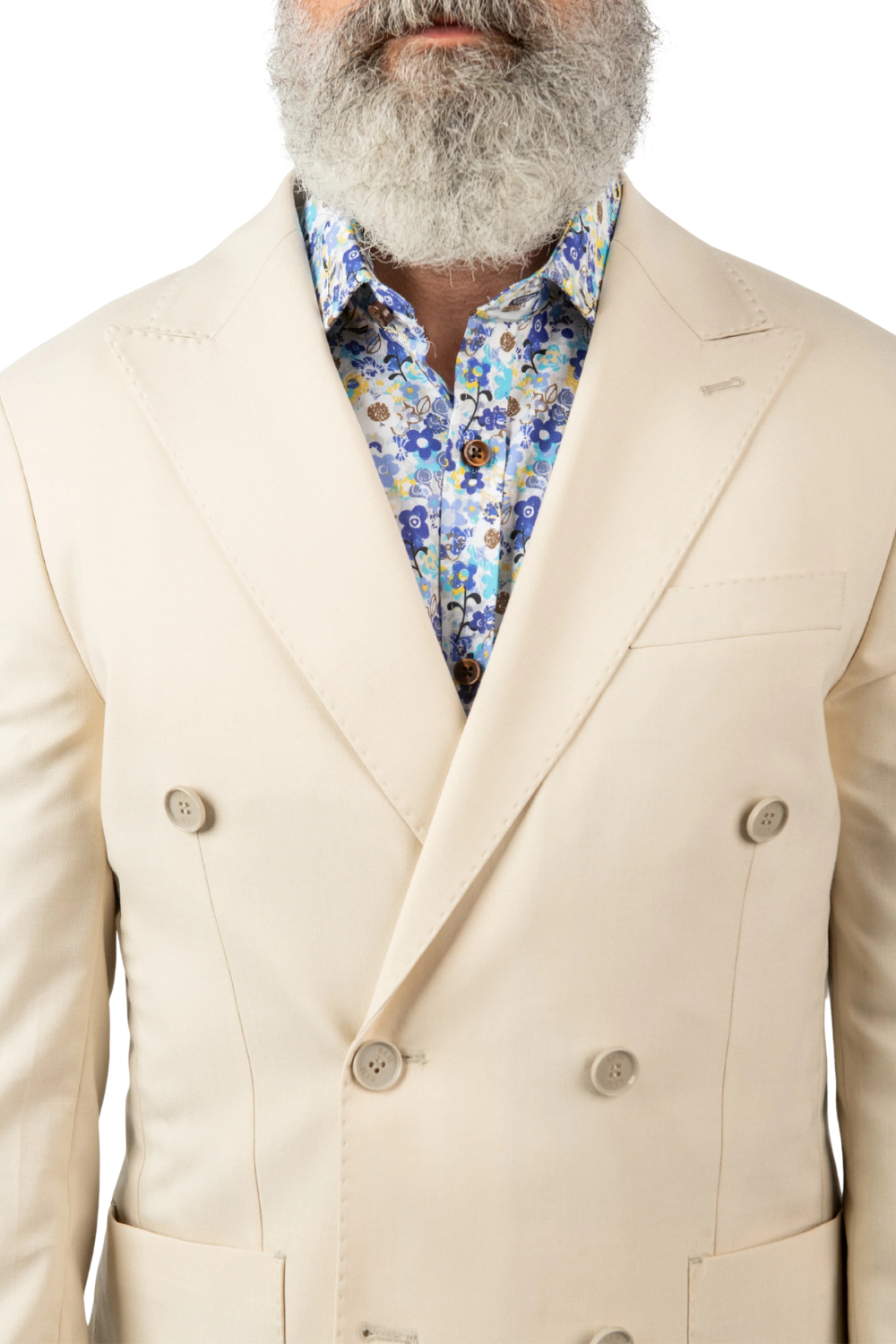 Costum Bărbați Crem Sport la Două Rânduri de Nasturi