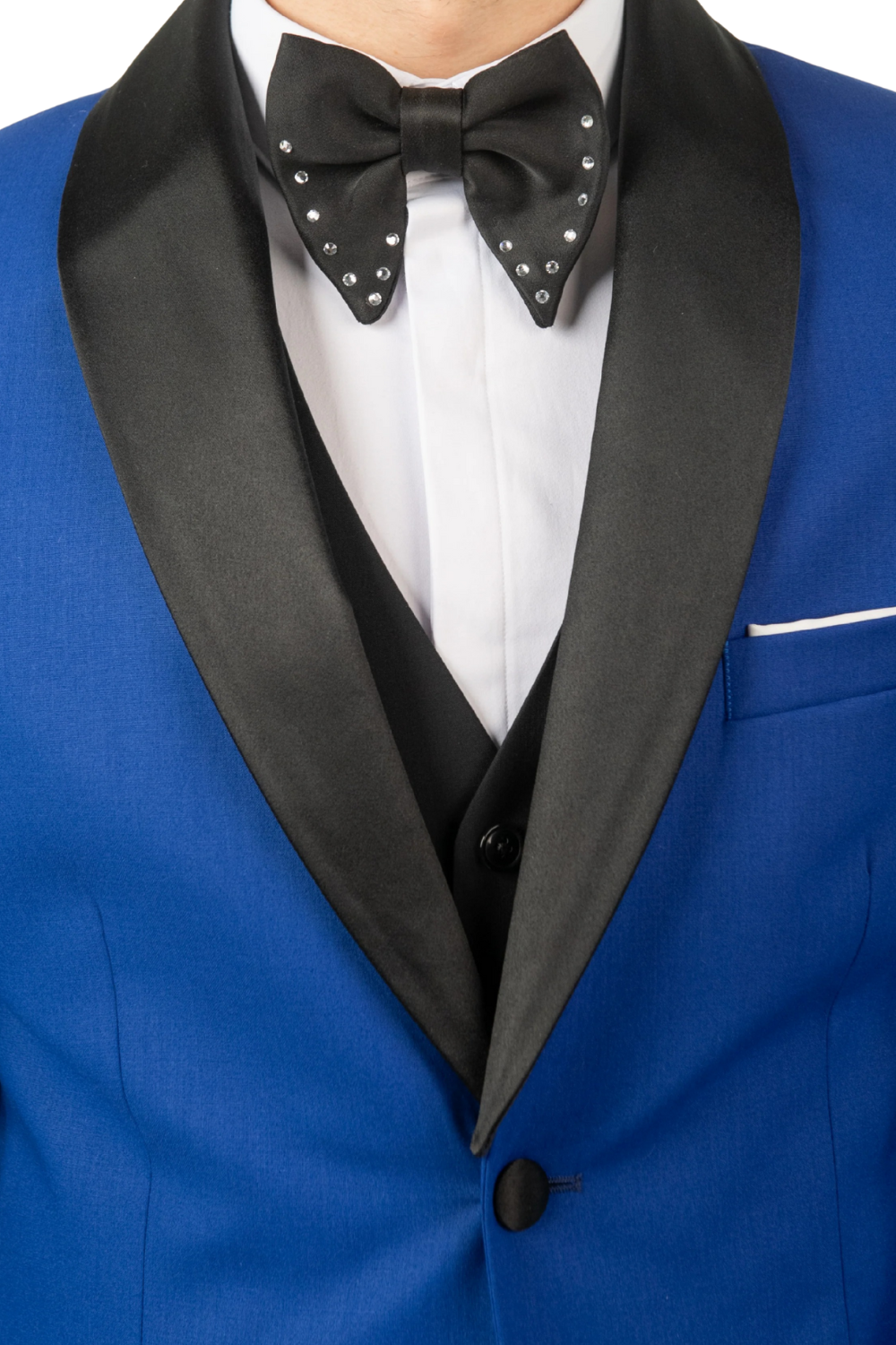 • Costum Bărbați Albastru de Ceremonie cu Rever Detașabil Negru în Trei Piese