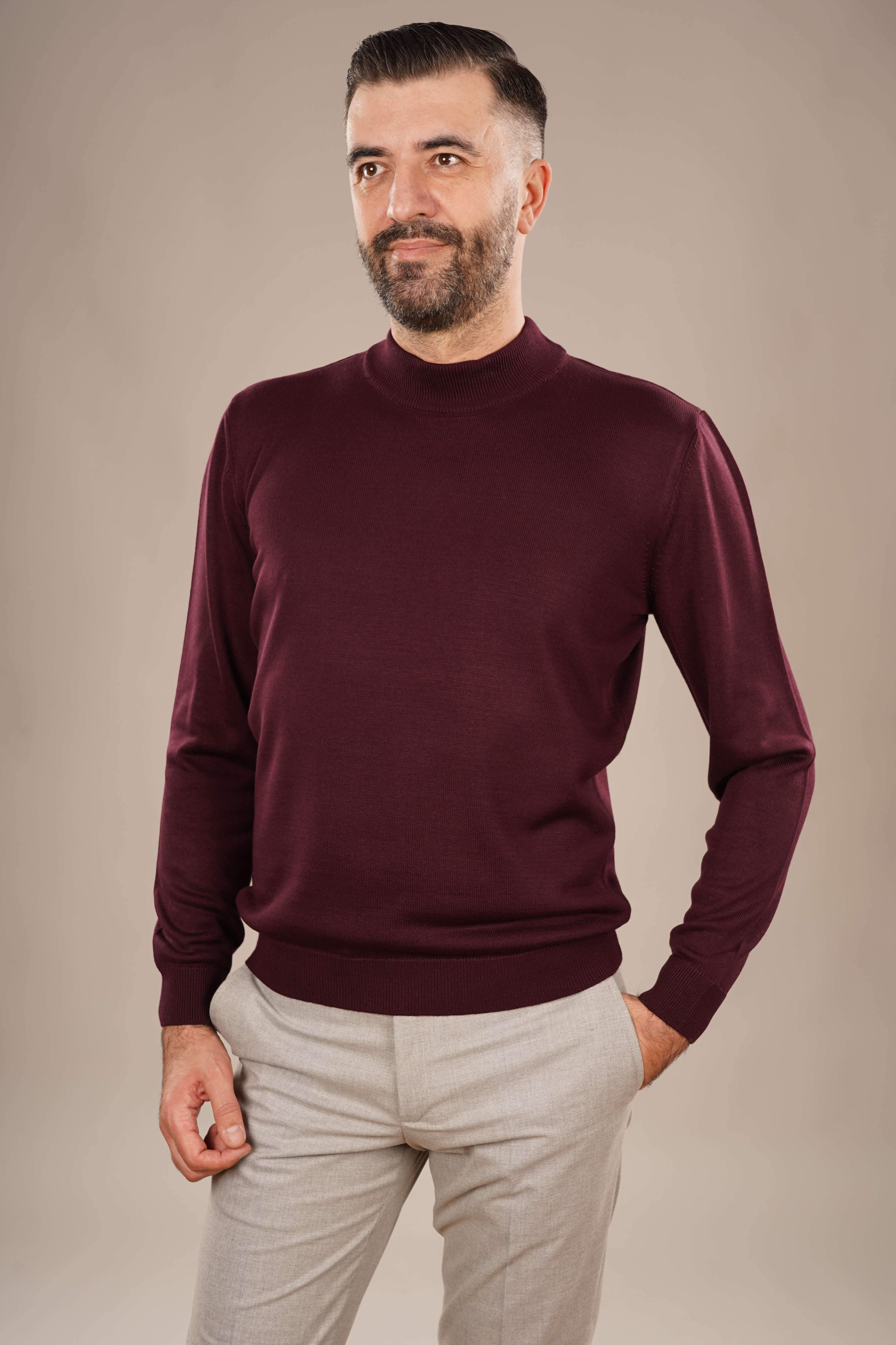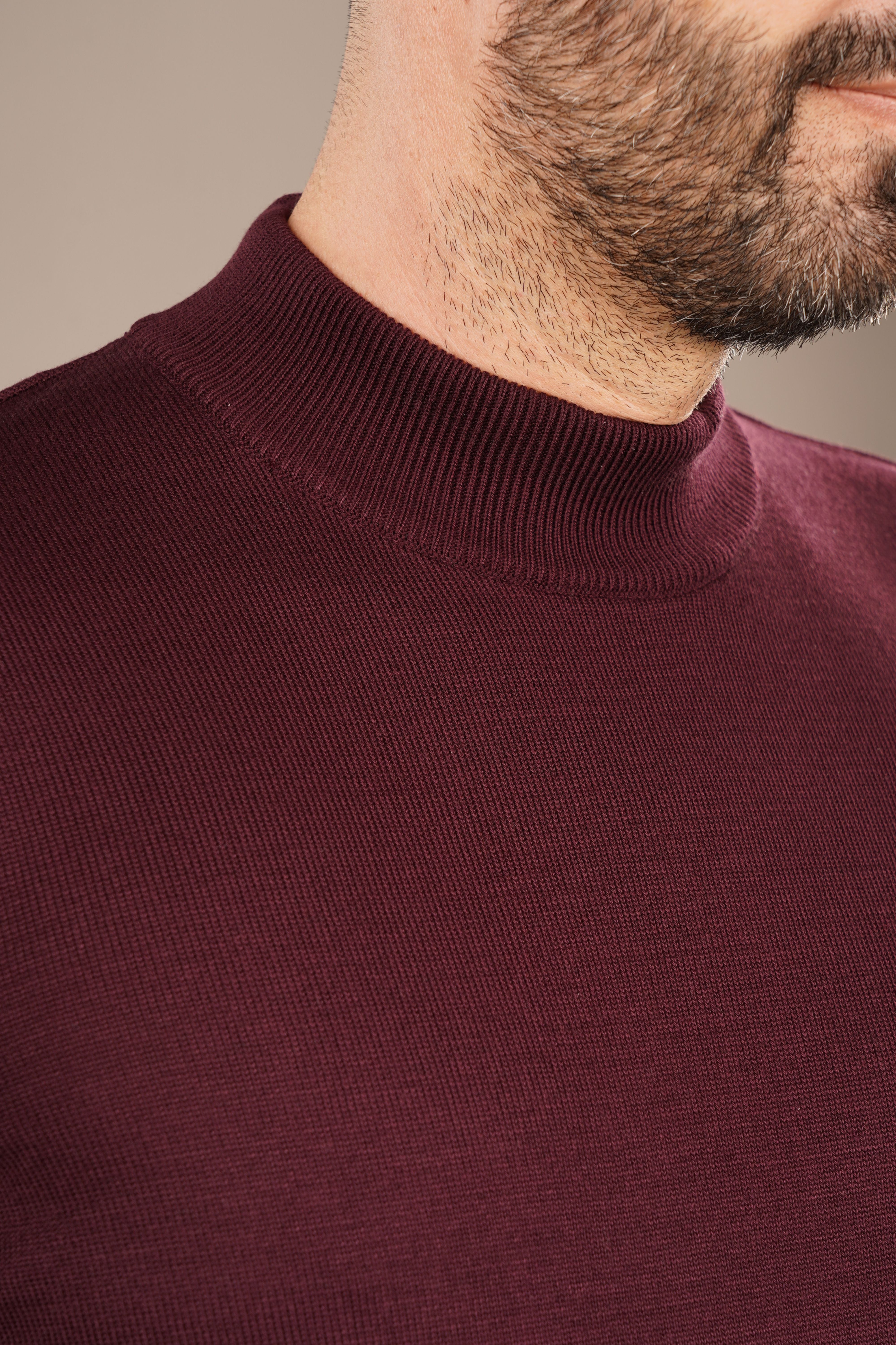 Pulover Bărbați Bordo cu Guler Înalt