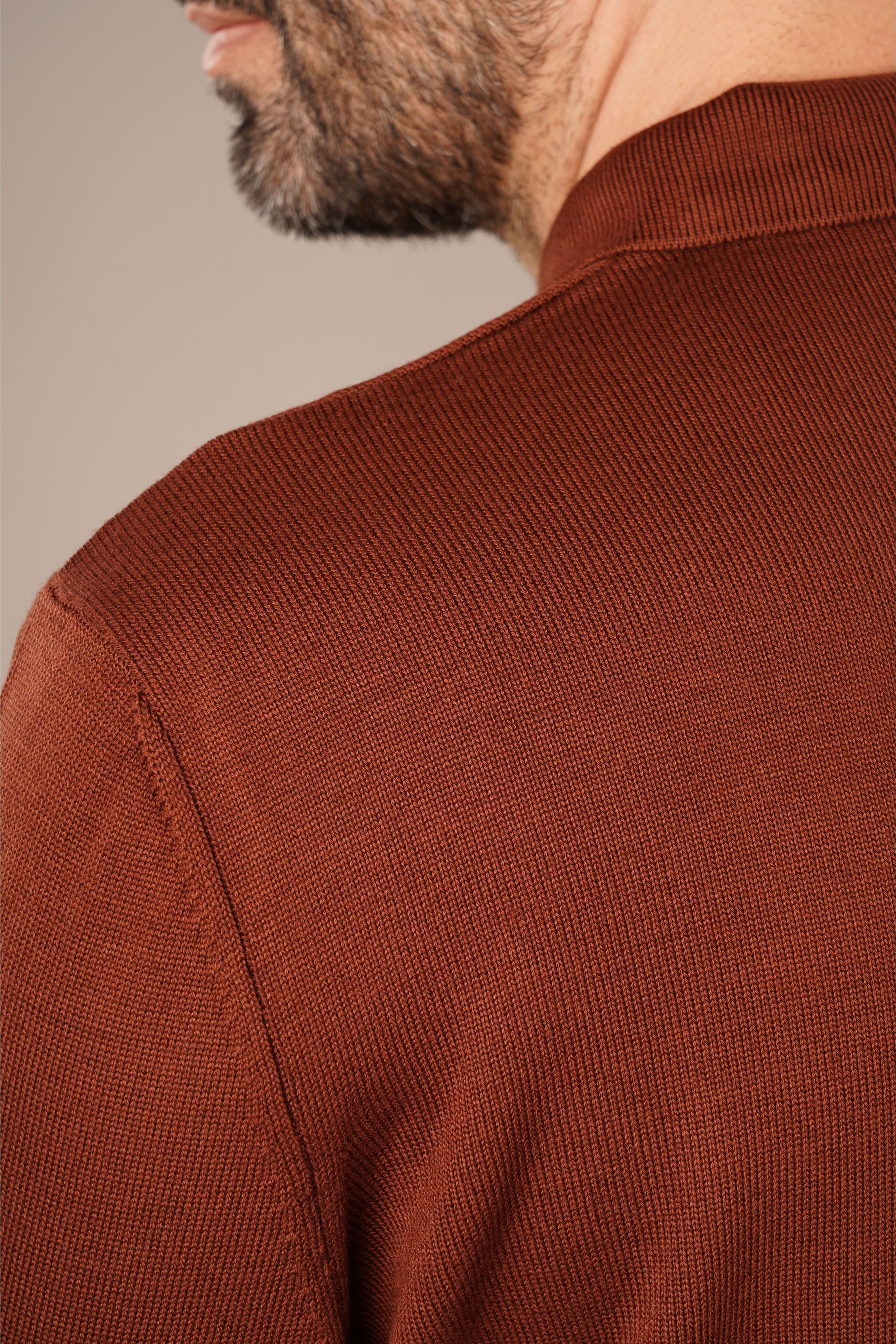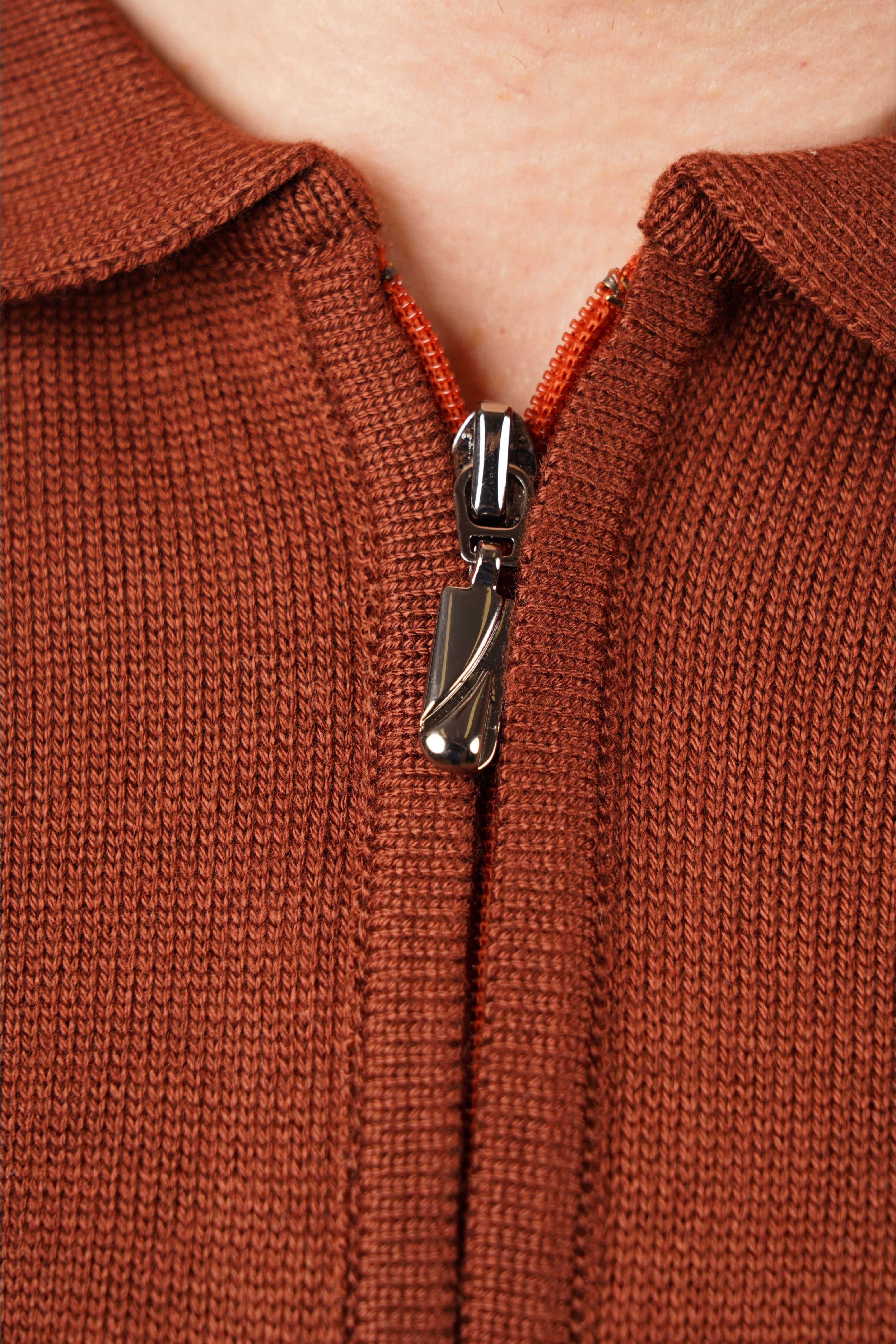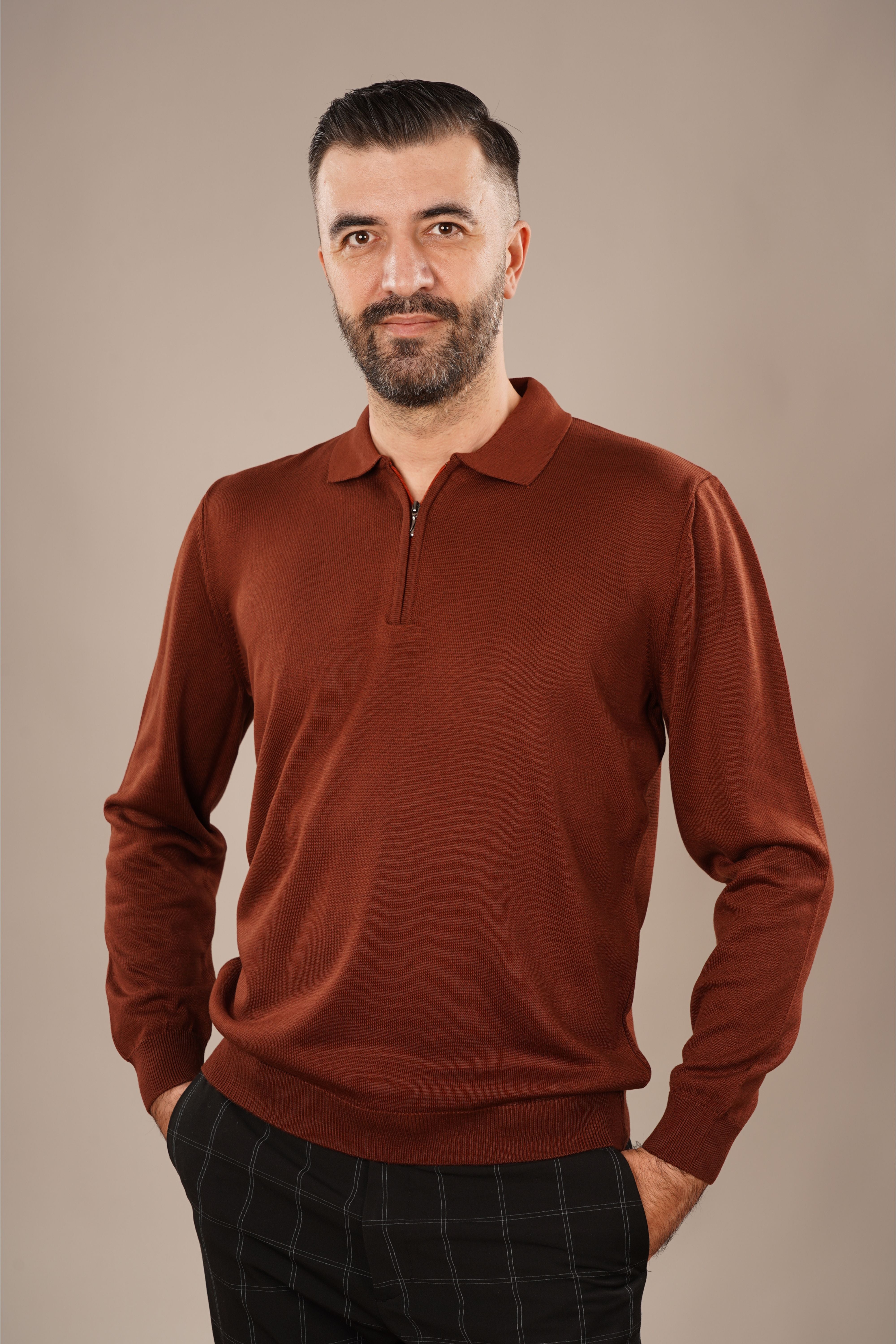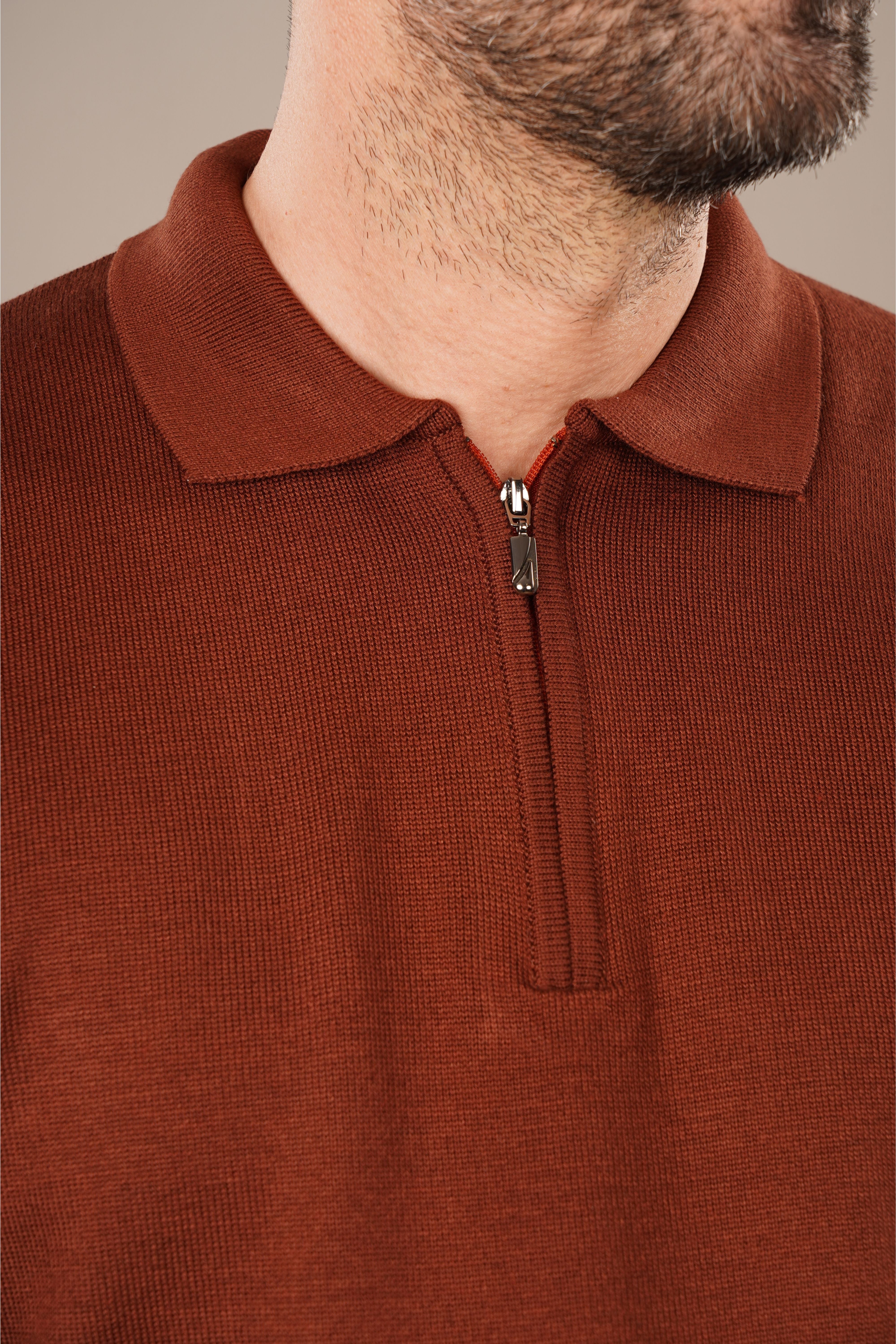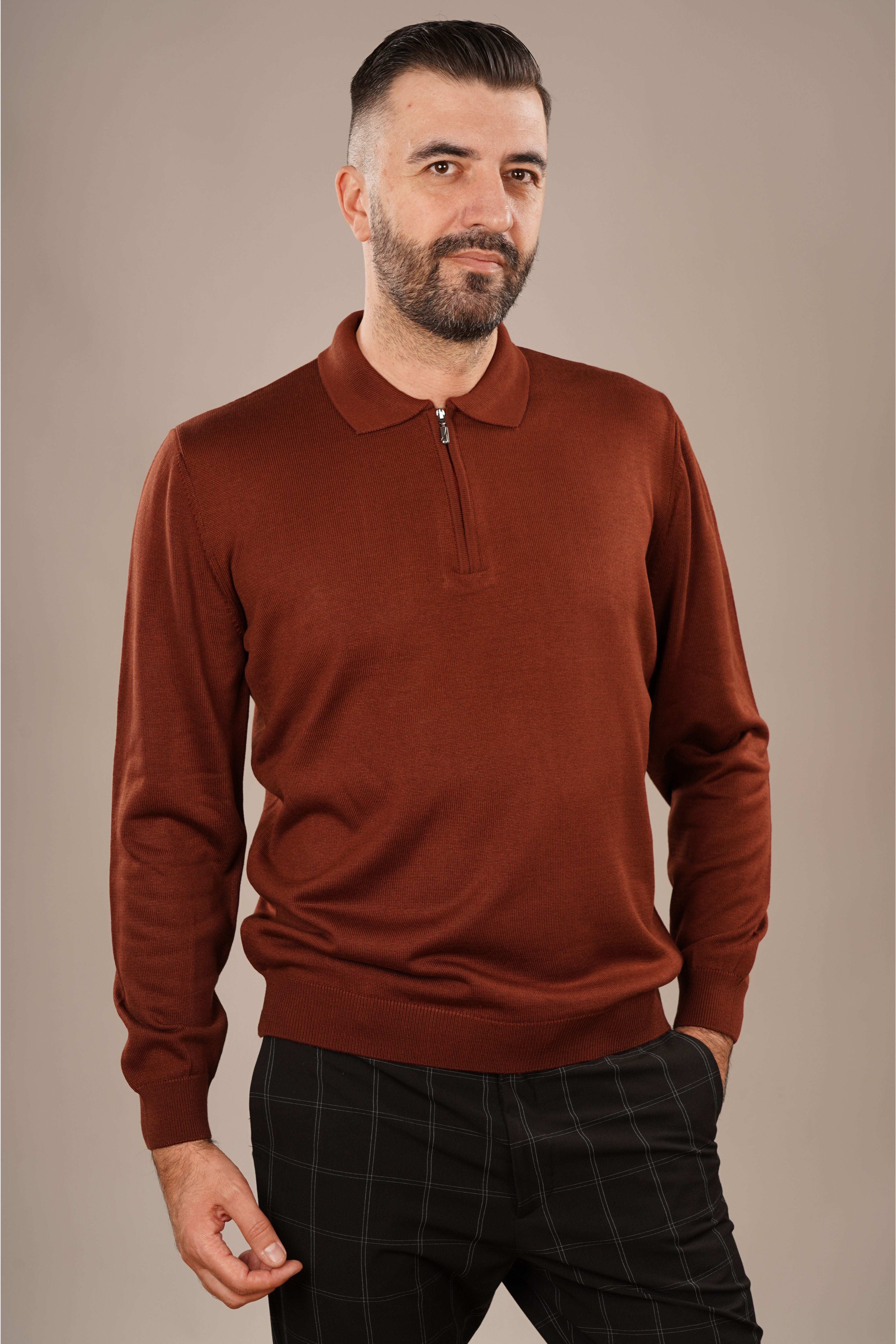 • Pulover Bărbați Cărămiziu cu Guler Polo și Fermuar