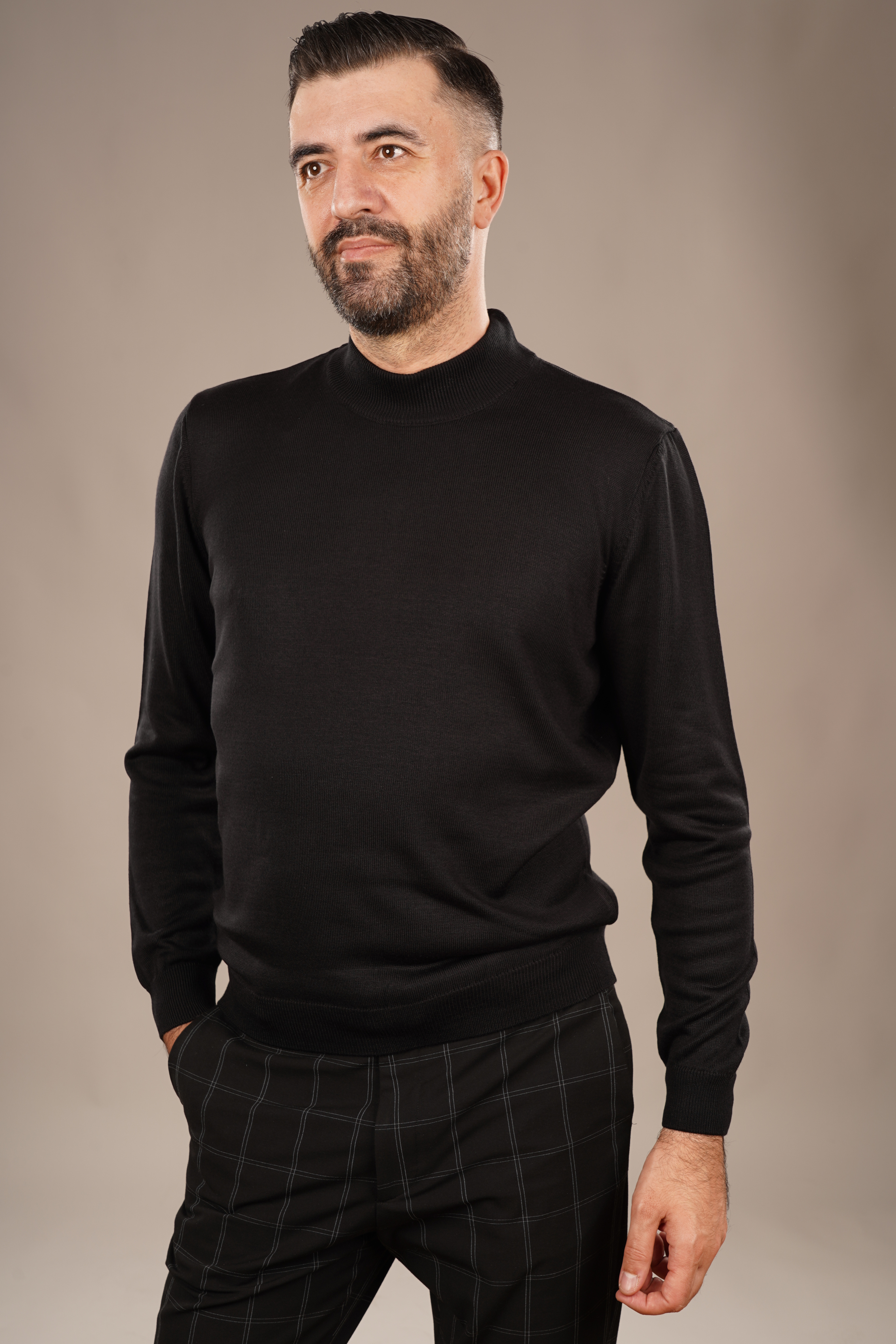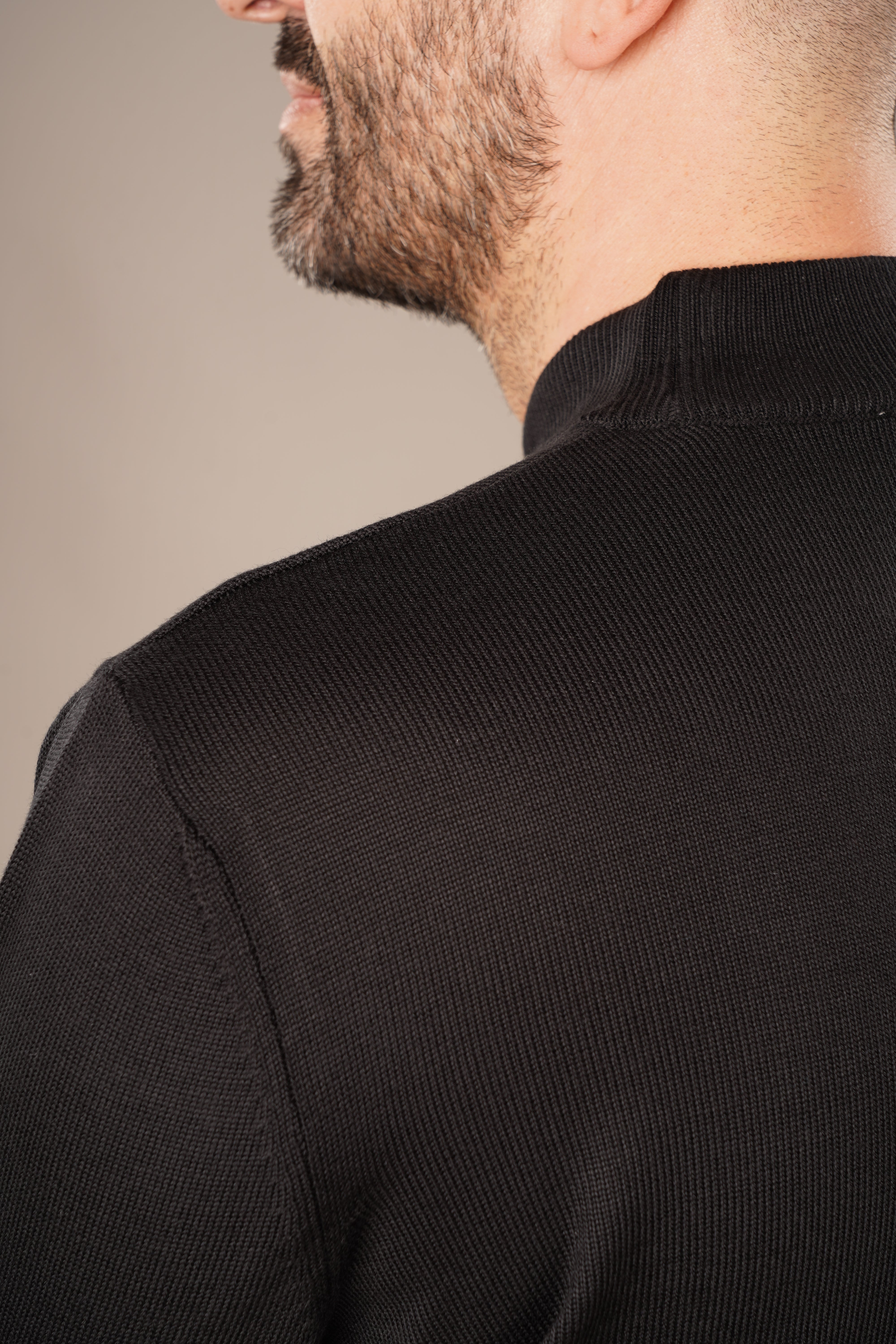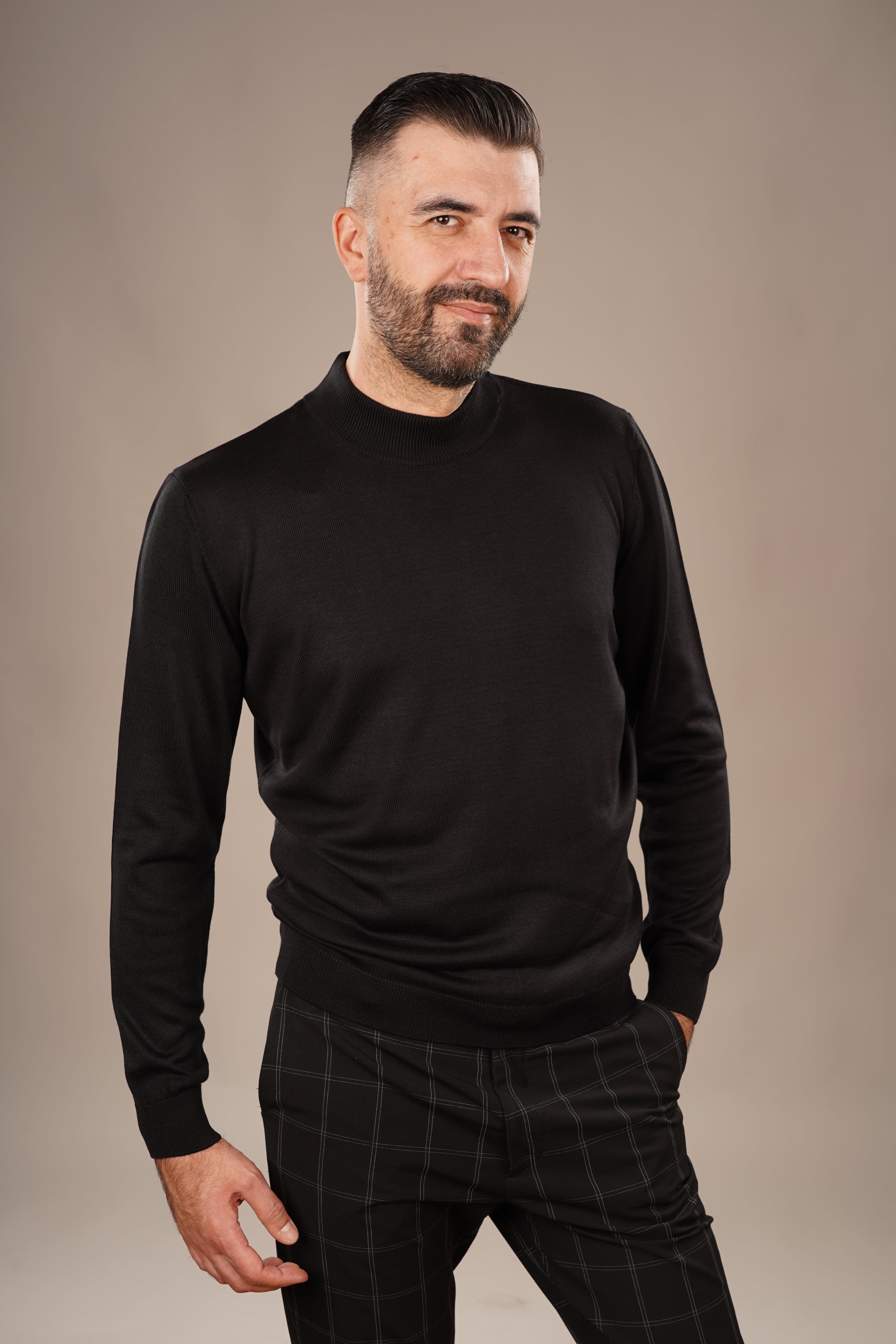 Un pulover care reflectă eleganța discretă și rafinamentul atemporal, conceput pentru bărbatul care preferă simplitatea sofisticată. Nuanța neagră, intensă și versatilă, conferă un aer sobru și rafinat, potrivit atât pentru ținute office, cât și pentru apariții casual elegante.