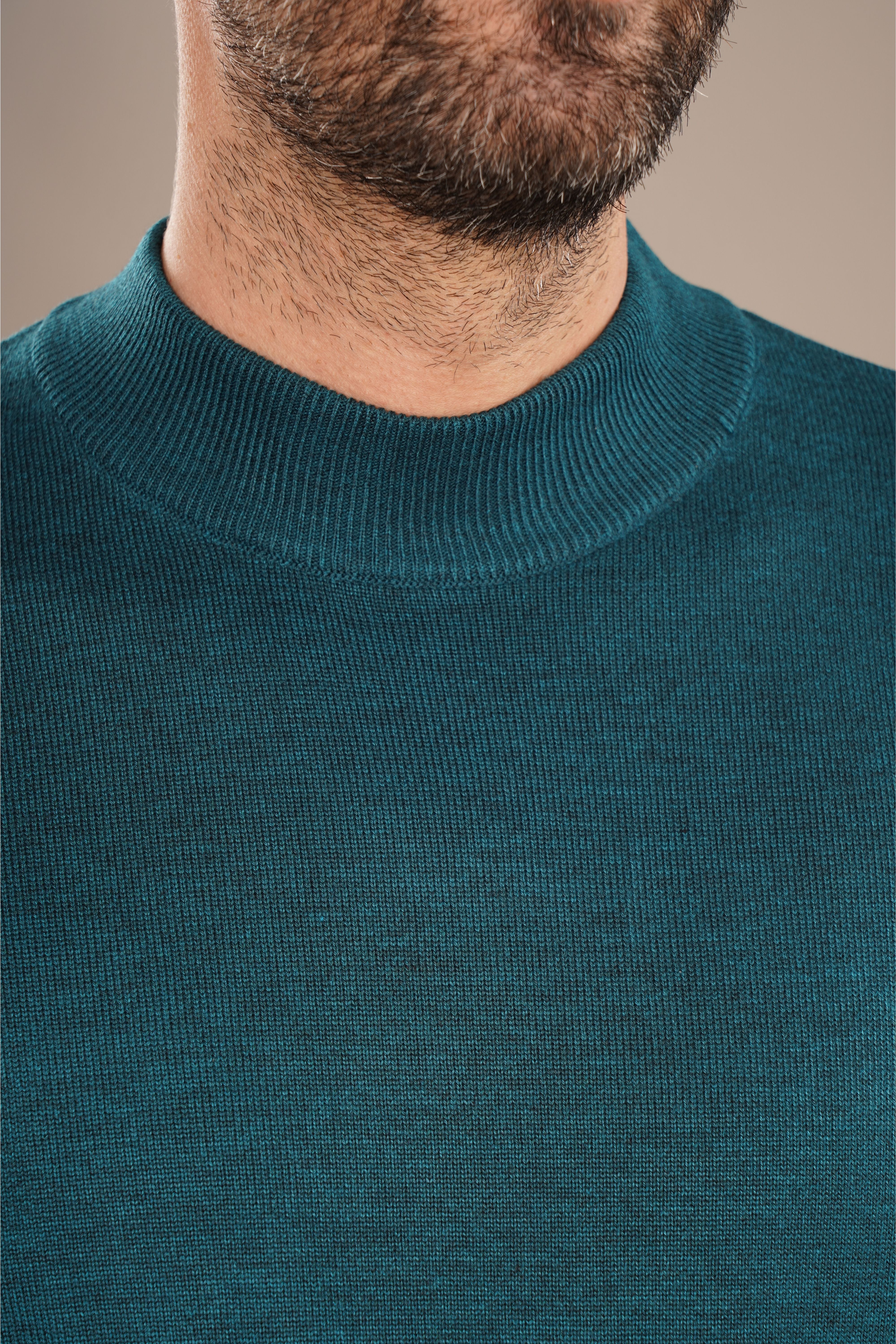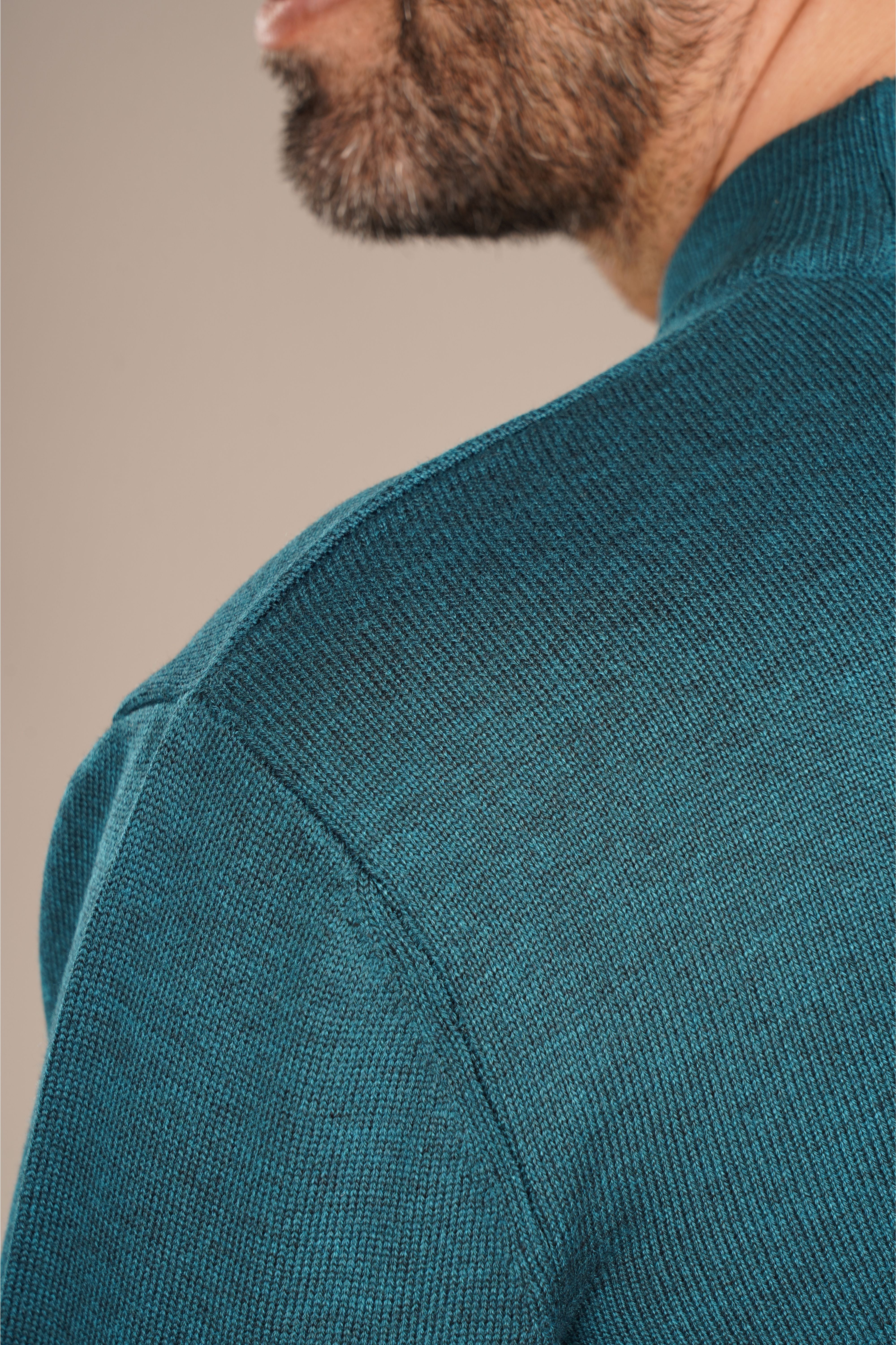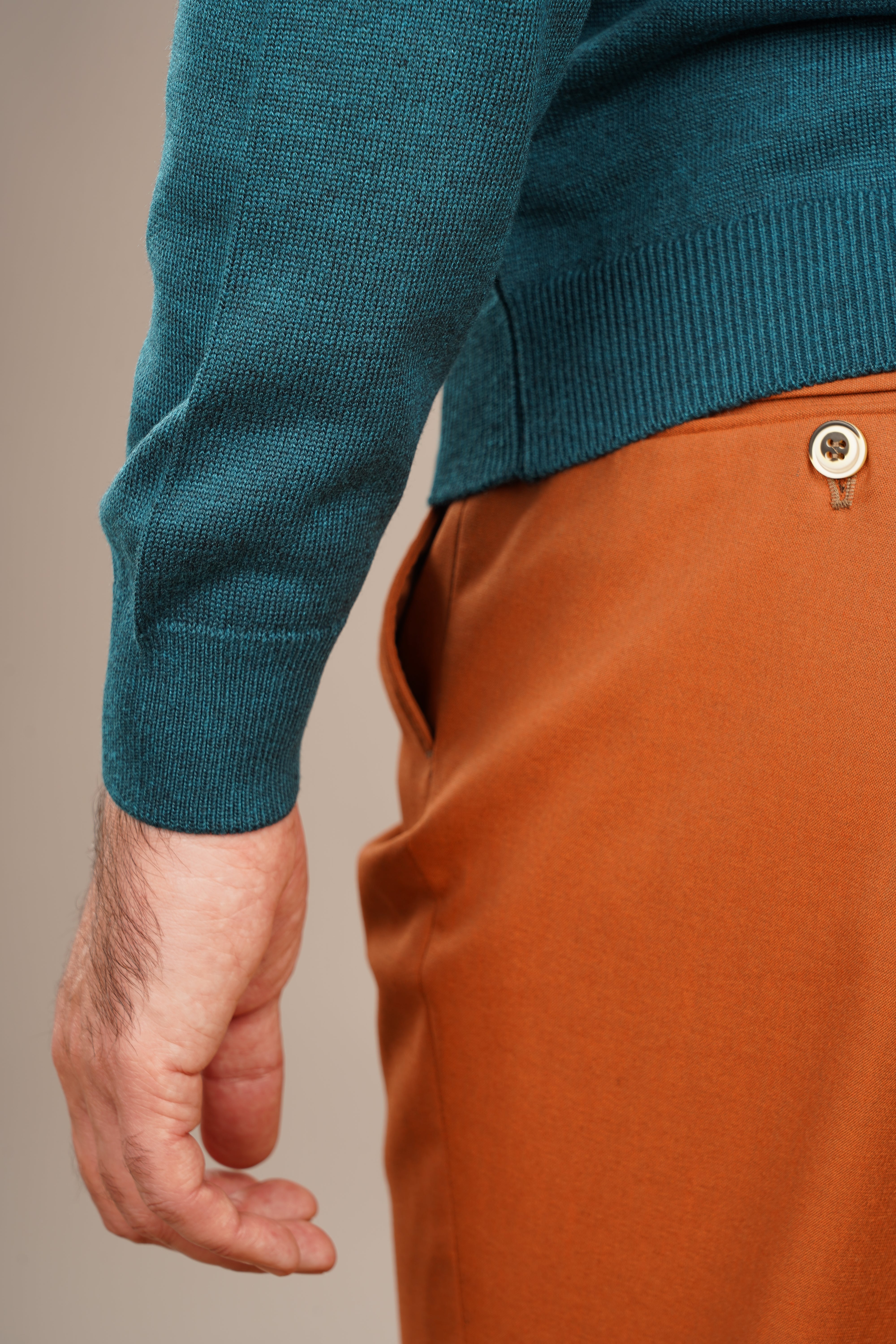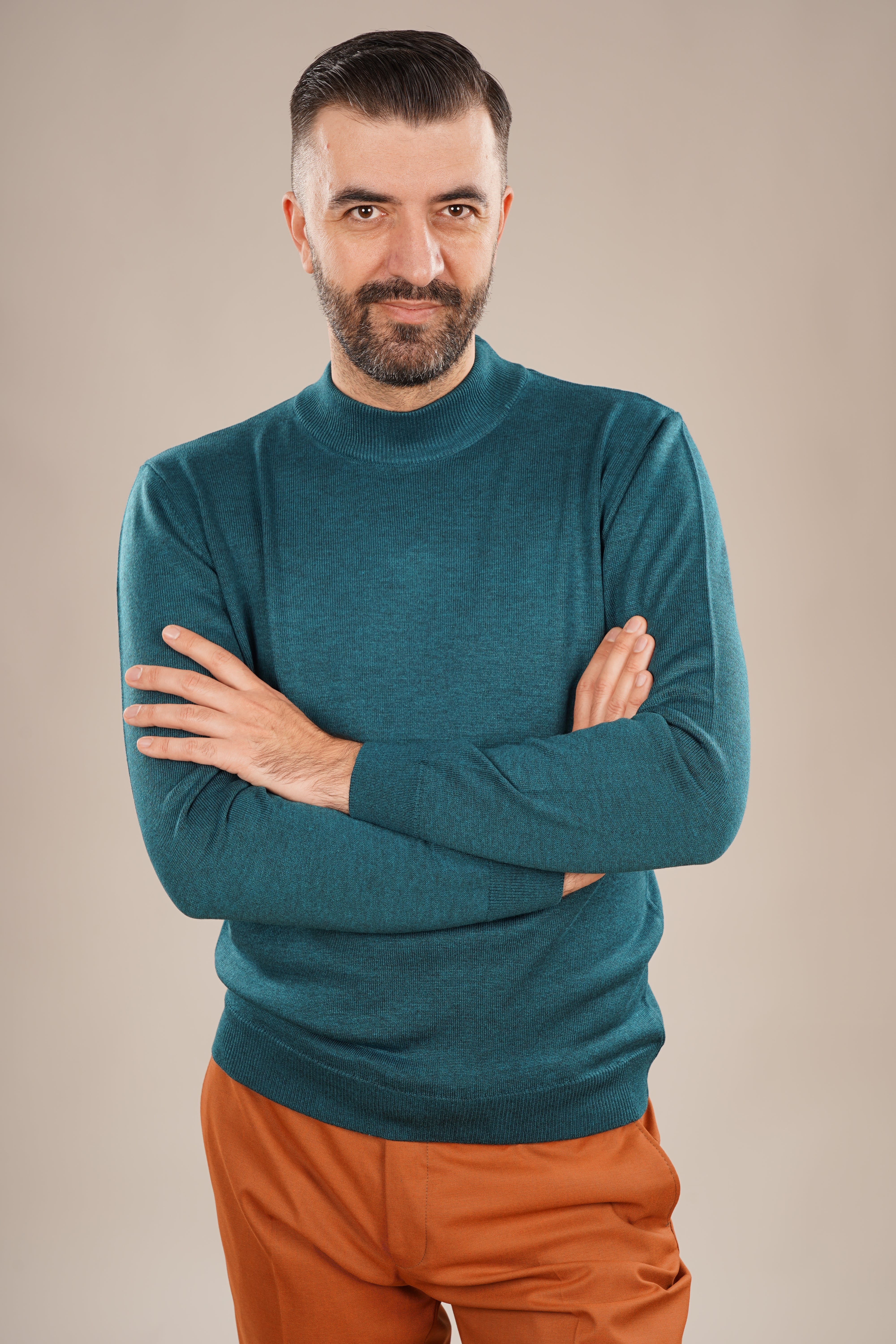Un pulover care exprimă echilibrul perfect între eleganță și modernitate, creat pentru bărbatul care apreciază rafinamentul discret. Nuanța petrol oferă un accent sofisticat și contemporan, potrivită pentru ținute business casual sau apariții relaxate, păstrând o notă de stil distinctă.